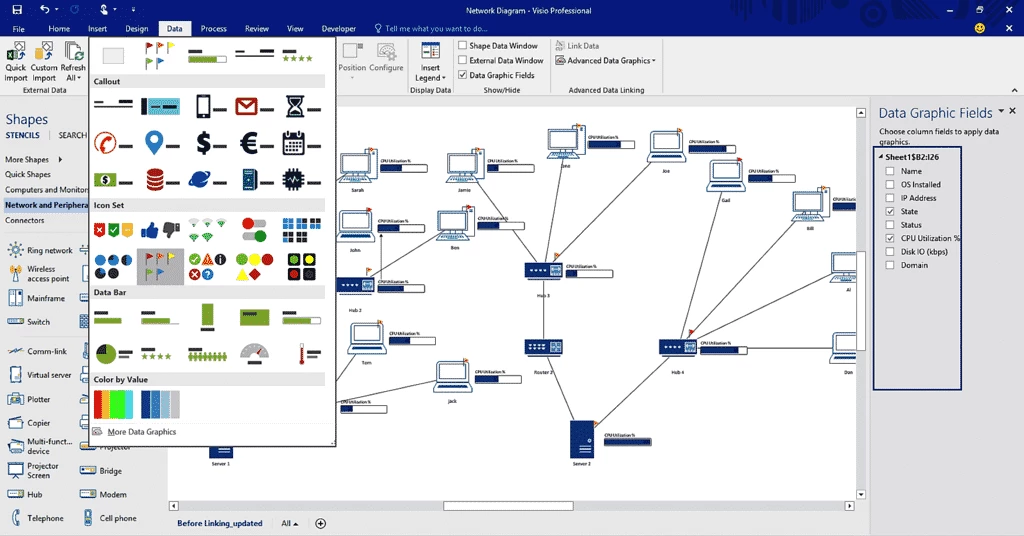 Vous disposez également d'une fonctionnalité de partage de données, vous permettant de lier en temps réel des données provenant de diverses sources innovantes, telles qu'Excel, SQL Server ou SharePoint, à votre diagramme. Il vous suffit de veiller à la mise à jour continue des diagrammes.